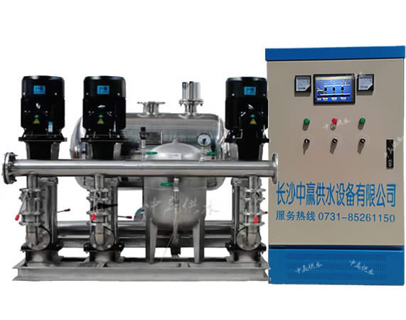 長沙中贏變頻恒壓供水設(shè)備主要由水泵機組、穩(wěn)壓罐、壓力傳感器、變頻控制柜、無負(fù)壓罐、管閥附件等組成,變變頻恒壓供